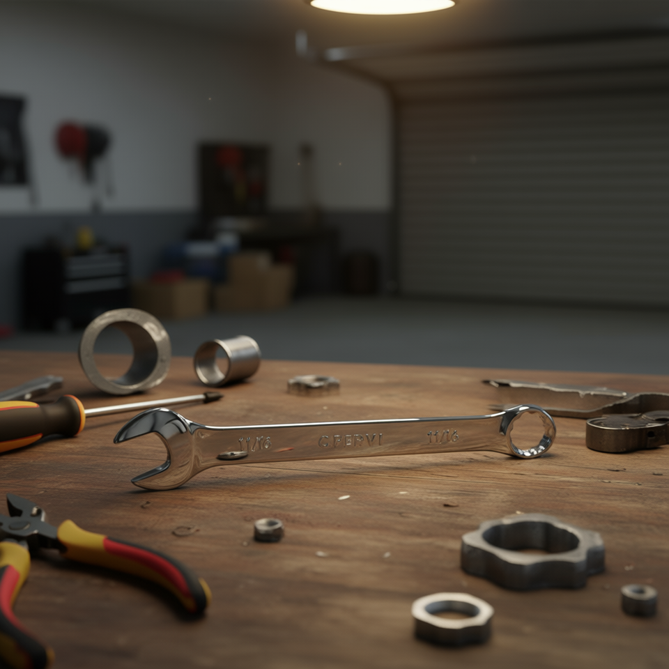 Llave Combinada Fervi de 11/16 Pulgadas, Cromada y Pulida a Espejo