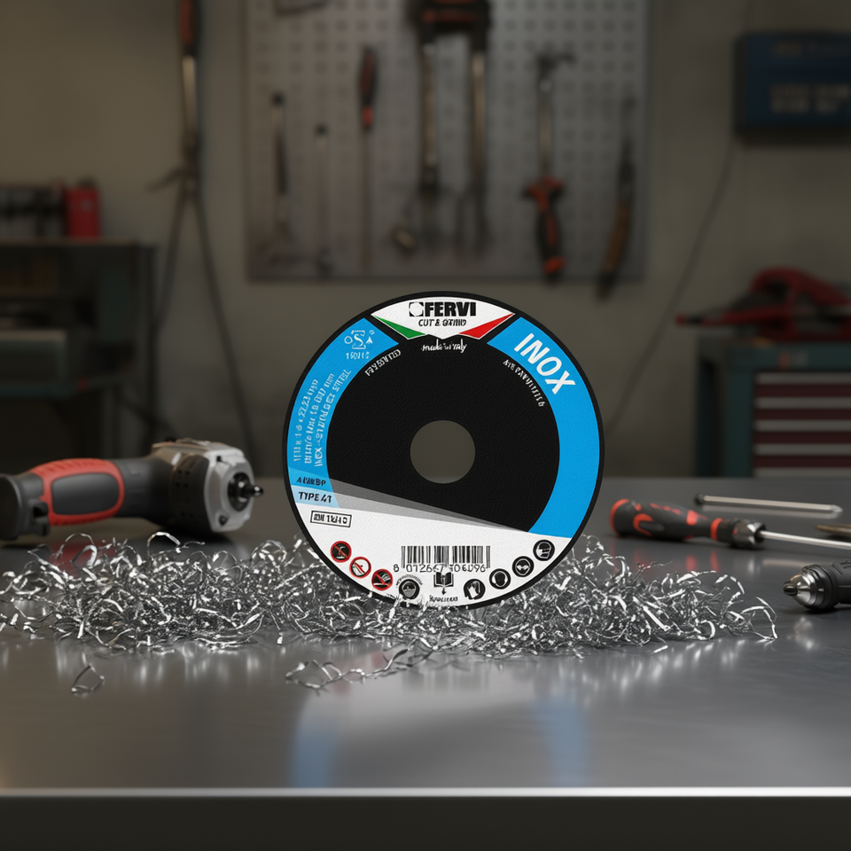 Disco de Corte y Desbaste Fervi Inox 115 x 1.6 x 22.23 mm Tipo 41 para Acero Inoxidable