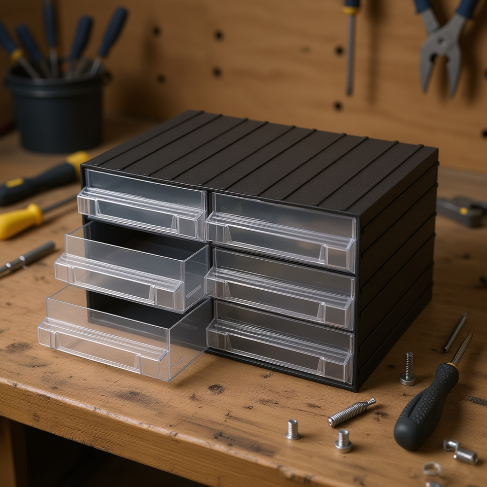 Unidad de cajones Fervi con cajones extraíbles transparentes, caja de almacenamiento de 6 compartimentos para herramientas y piezas pequeñas
