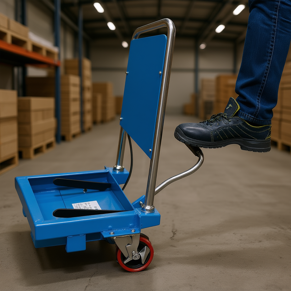 Carretilla Fervi con Altura Ajustable y Palanca de Pie para Uso en Logística y Almacenes