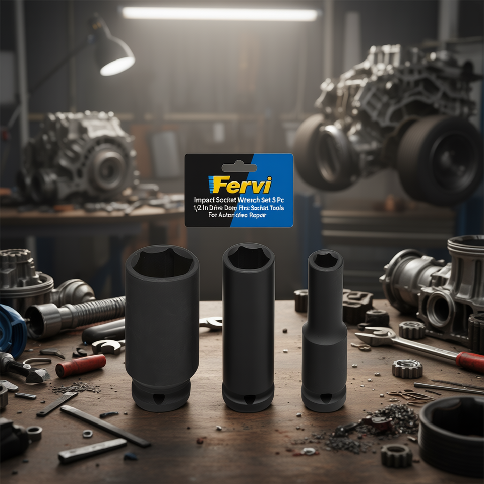 Juego de llaves de impacto Fervi, 3 piezas, 1/2 pulgada, herramientas de vaso hexagonal profundo para reparación automotriz