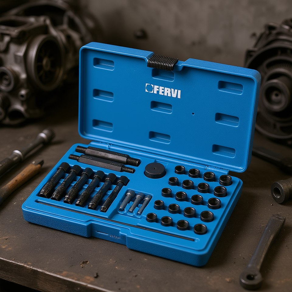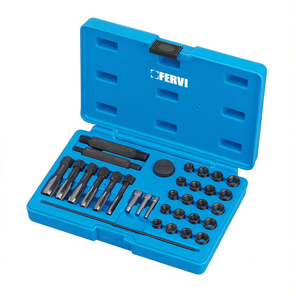 Kit de reparación de roscas métricas Fervi con insertos de sujeción para bujías incandescentes