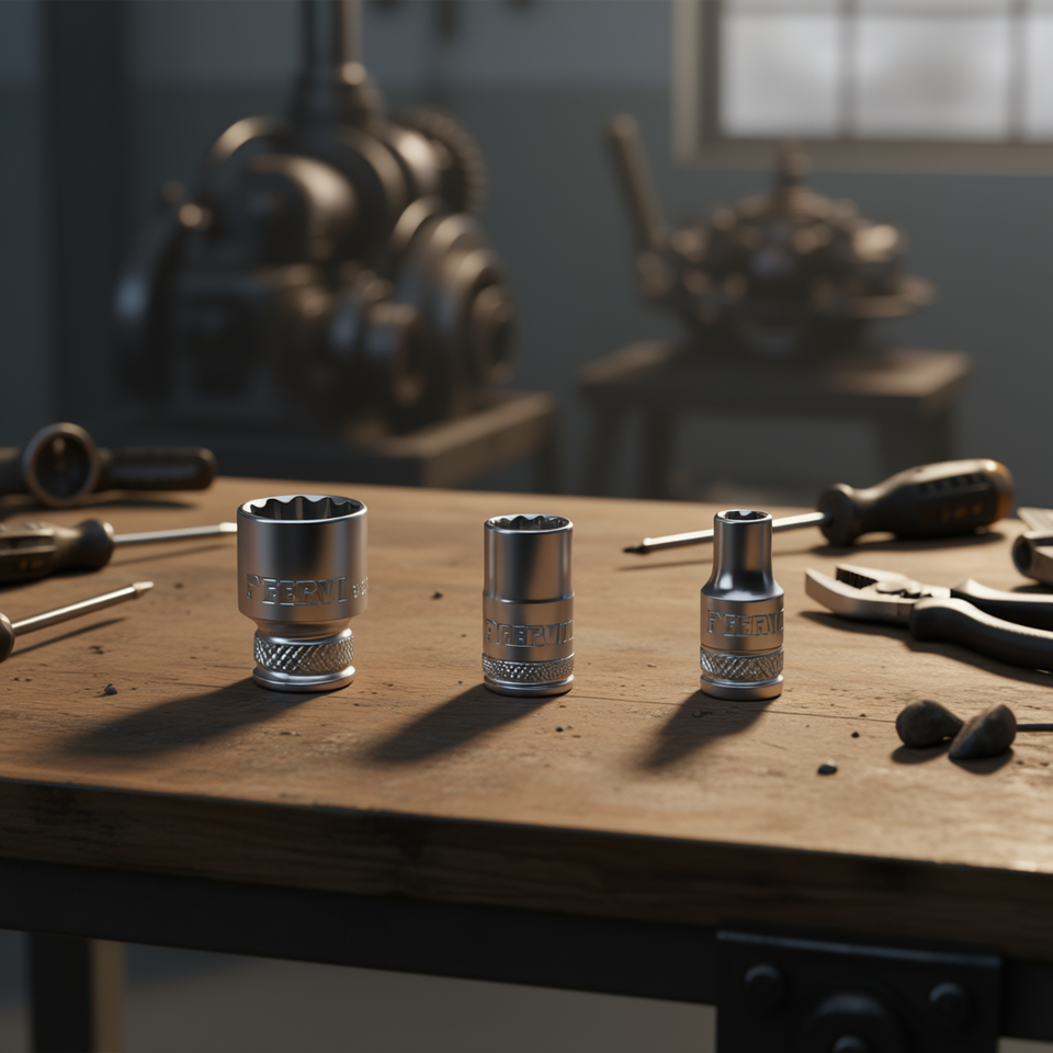 Juego de llaves de vaso poligonales Fervi, serie normal, 12 puntas, acero al cromo vanadio