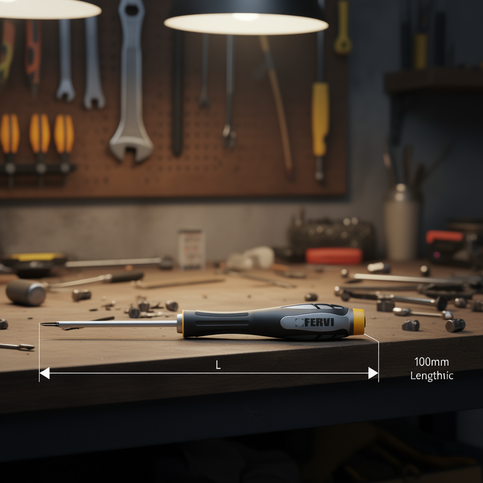 Destornillador Torx de Precisión Fervi, 100 mm de Longitud, Mango Ergonómico, Uso Profesional