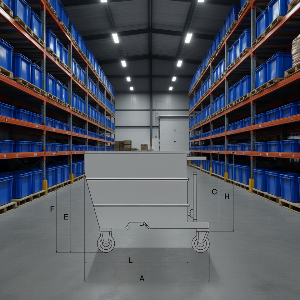 Contenedor basculante Fervi para chips con ruedas de 200 mm de ancho para uso industrial