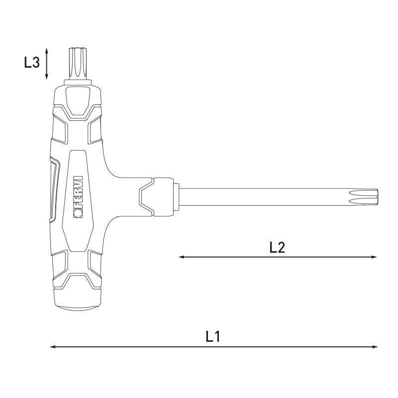 Llave Torx Fervi con mango de plástico, dimensiones L1 L2 L3