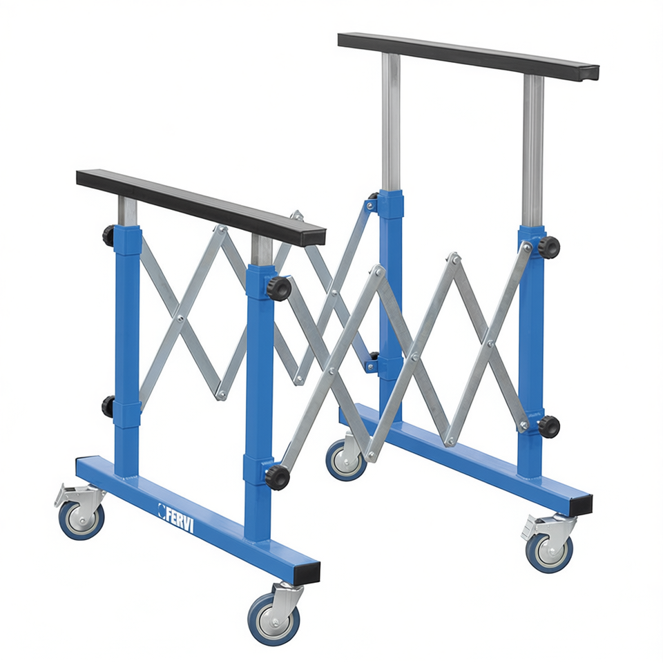 Soporte Telescópico Universal Fervi, Soporte de Taller con Altura Ajustable y Ruedas para Mantenimiento de Automóviles, Modelo S017, Origen Italia, 3 Años de Garantía