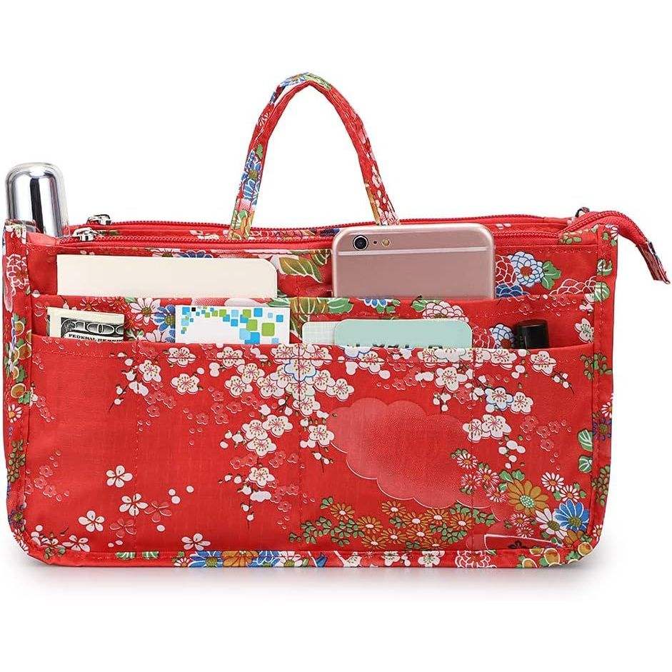 Organizador de Bolsos de Gran Capacidad con 13 Bolsillos, Estilo Floral Festivo, con Asa y Estampado, Inserto para Bolsos y Carteras, Bolsas y Estuches de Cosméticos de Moda