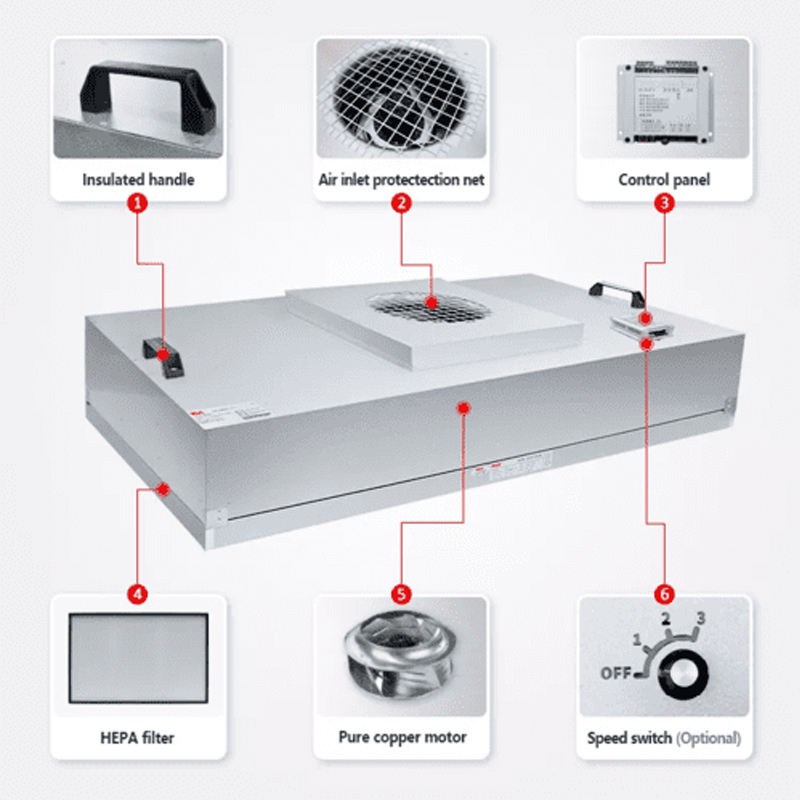 Unidad de filtro de ventilador Ffu Clean Room Para Ducto 2X4 Tablero de control para purificador de aire Laminaire Flujo de aire para Mac Ffu