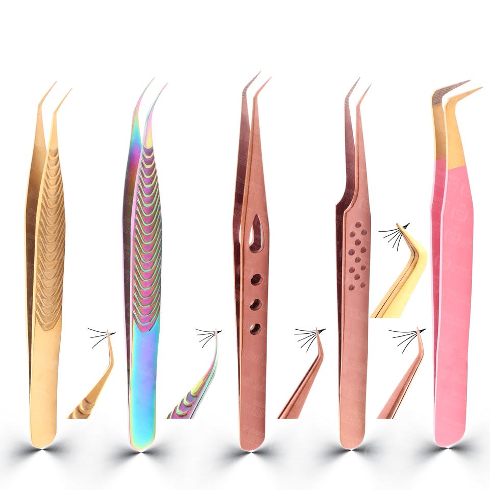 Pinzas para Extensión de Pestañas con Punta de Fibra y Logotipo Personalizado, Probadas a Mano, Ergonómicas, Duraderas, Nueva Gama, Pestañas en Abanico