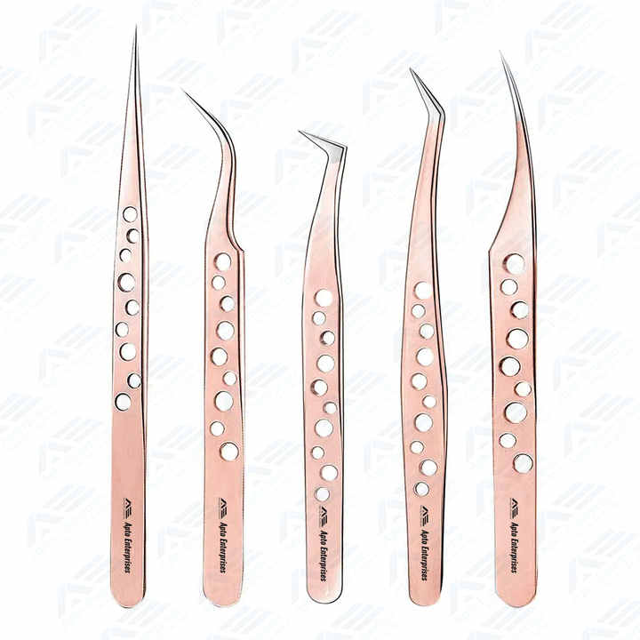 Pinzas de pestañas con punta de fibra para extensiones de pestañas Pinzas de extensión de pestañas curvas y de volumen de precisión con agarre antideslizante