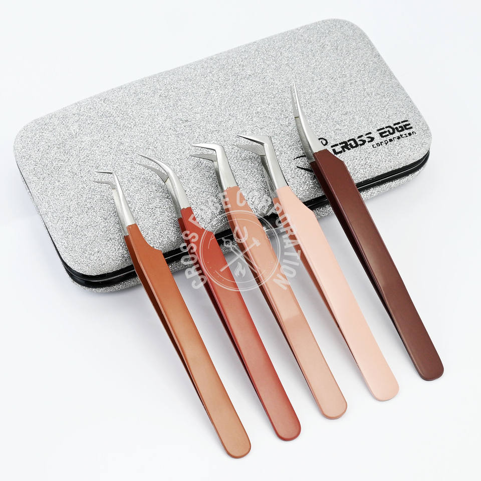 Puntas de fibra Pinzas perfectas para aislamiento Extensiones de pestañas 90 Volumen de bota Pinzas clásicas curvas Punta puntiaguda de acero inoxidable