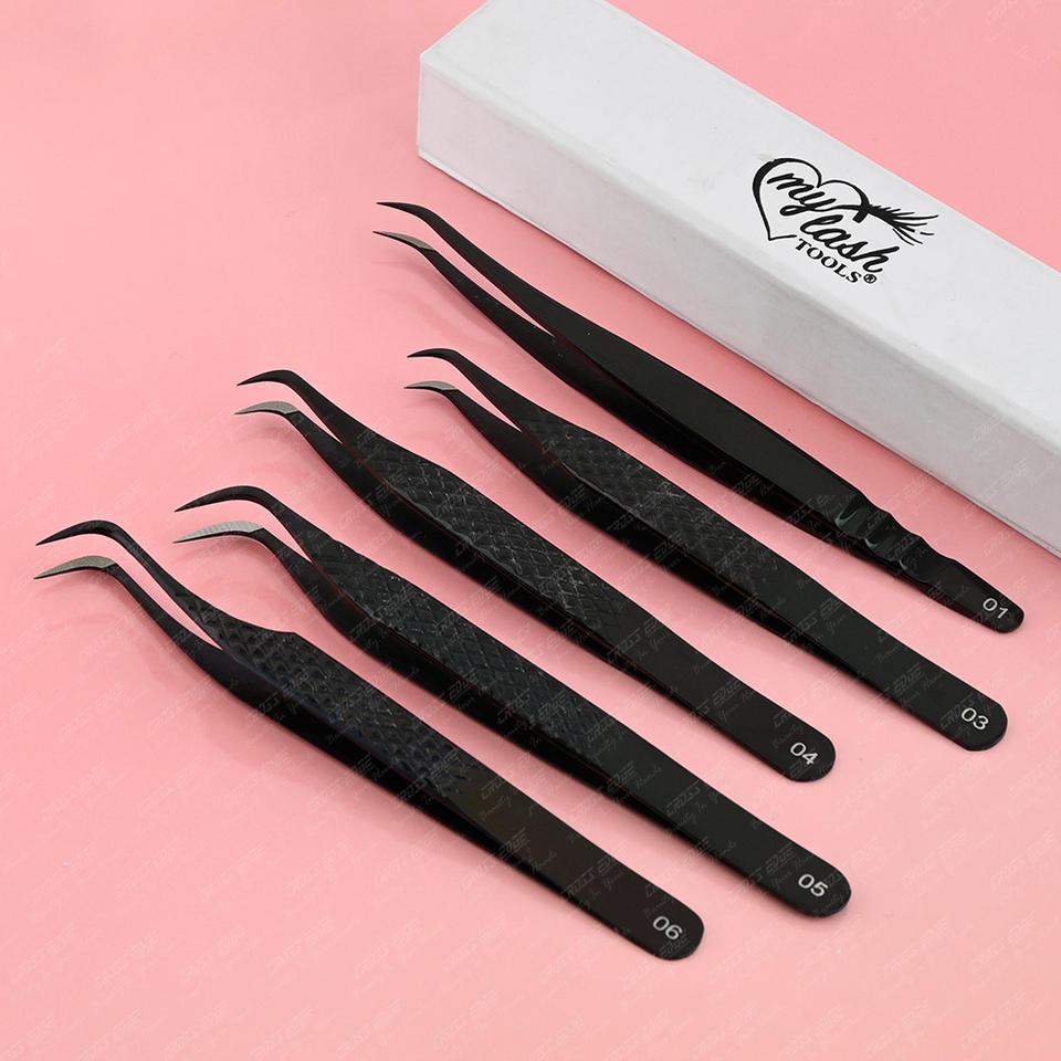Color:Elección del cliente 45 pinzas de pestañas de 90 grados herramienta de pestañas negro