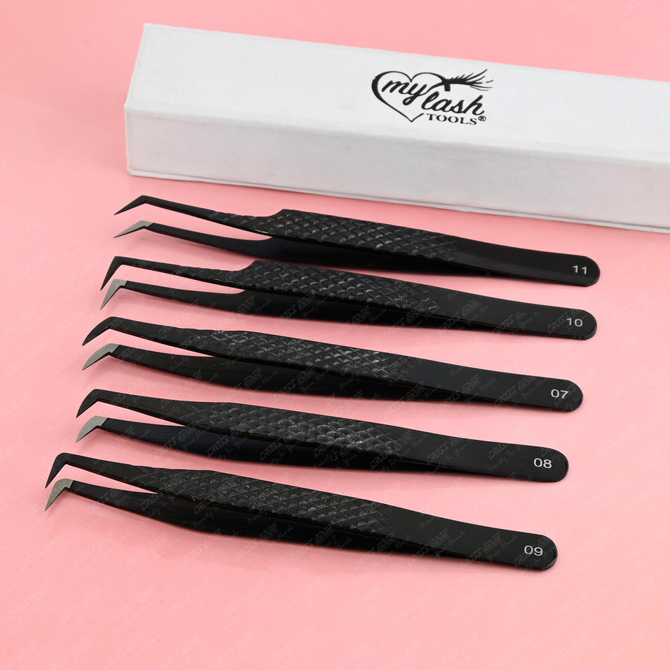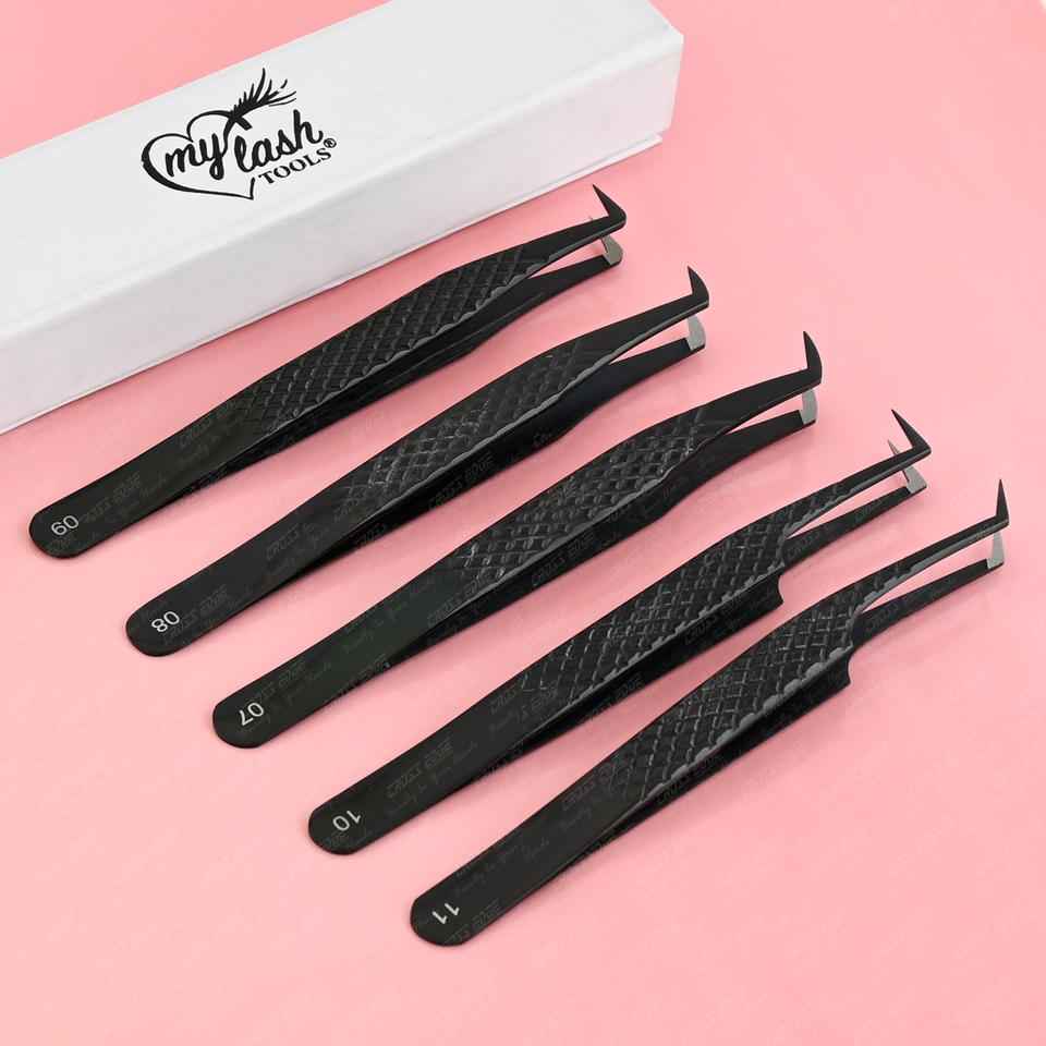 Color:Elección del cliente 45 pinzas de pestañas de 90 grados herramienta de pestañas negro