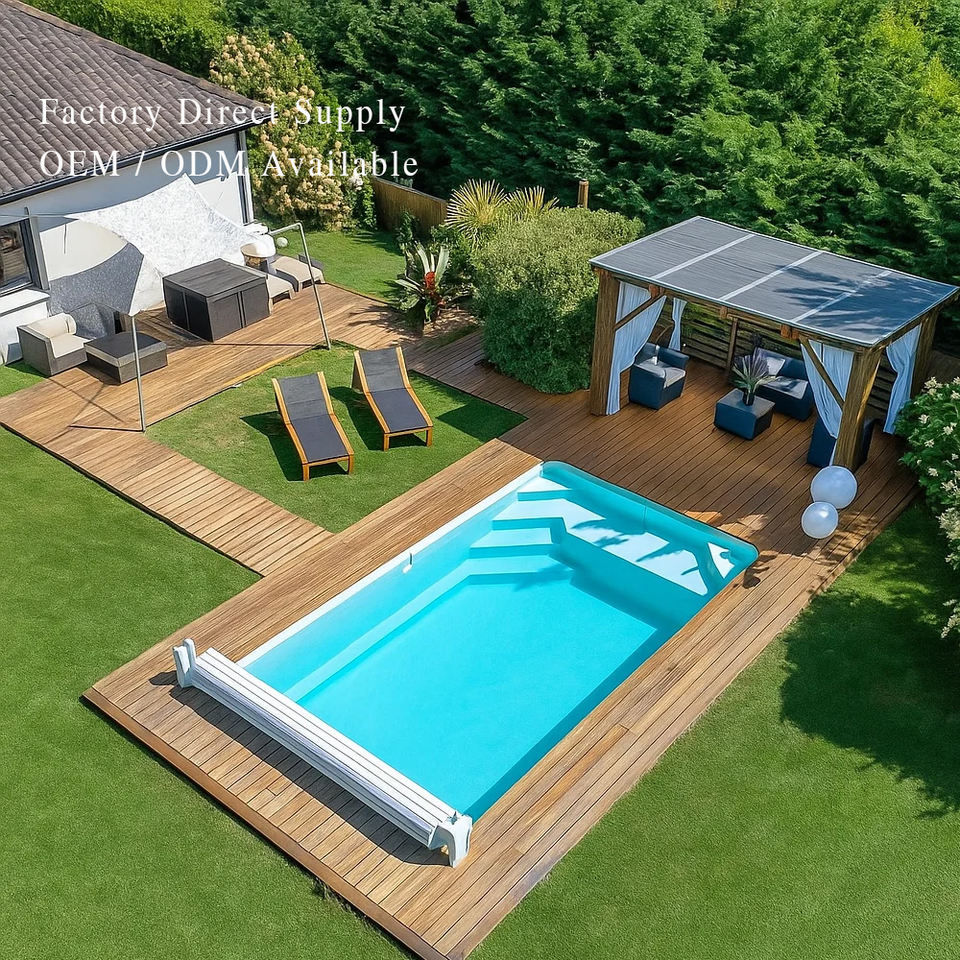 Piscina de Fibra de Vidrio con Cascada y Jacuzzi, Piscina Enterrada Personalizada para Adultos y Niños