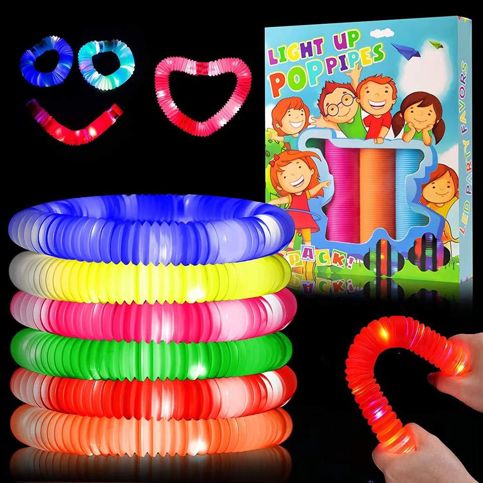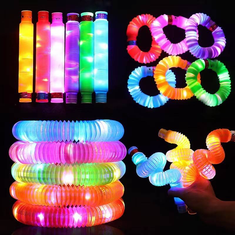 Juguete Antiestrés - Tubo Luminoso LED Intermitente - Juguete Elástico y Apretable para Aliviar el Estrés