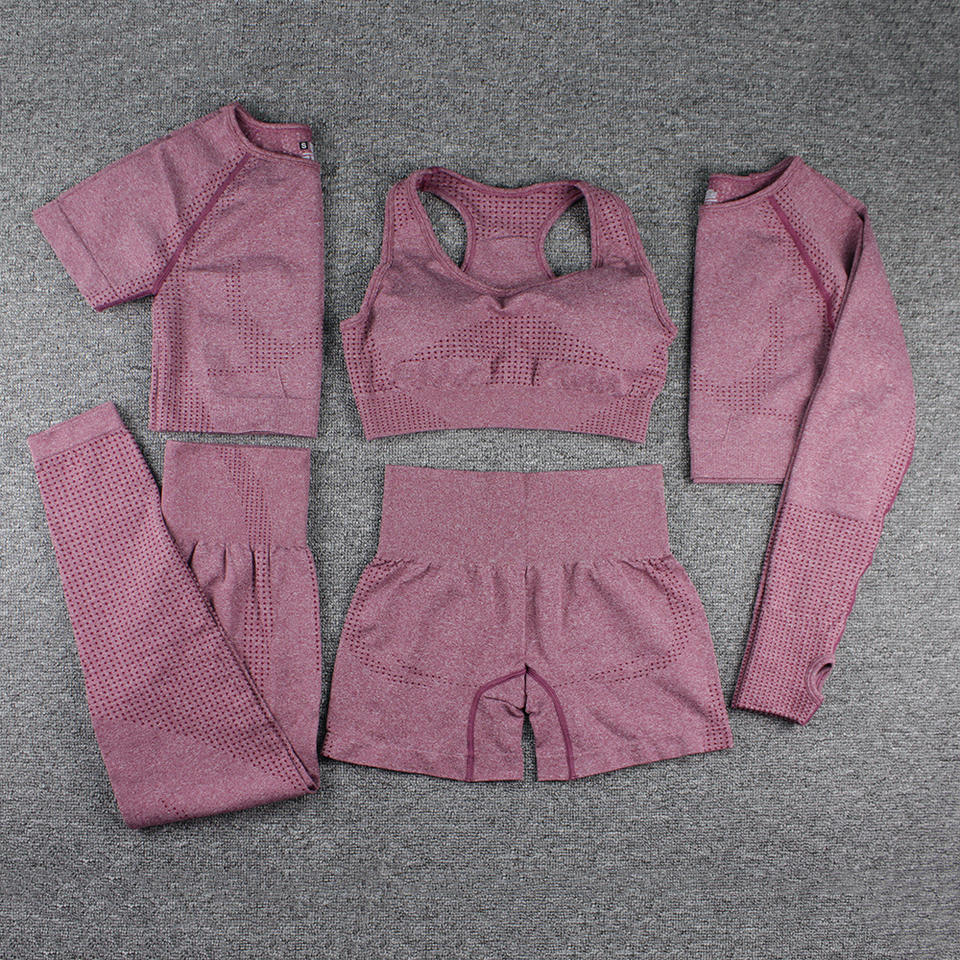 Fiess Tallas grandes Sujetador deportivo sin costuras Leggings Entrenamiento Yoga Set 2/3/5PCs Patrón sólido Crop Top Logo Crop Top Sujetador deportivo Leggings