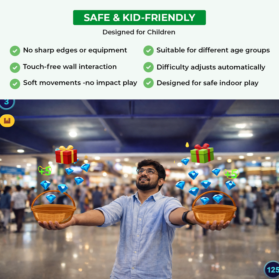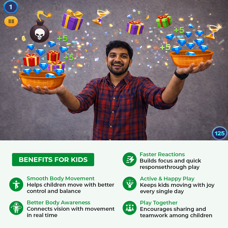 Sistema de Juego Interactivo de Seguimiento Corporal Fill The Basket para Niños, Juegos de Interior con Sensor de Movimiento, Kit de Juego Digital – INEK00031
