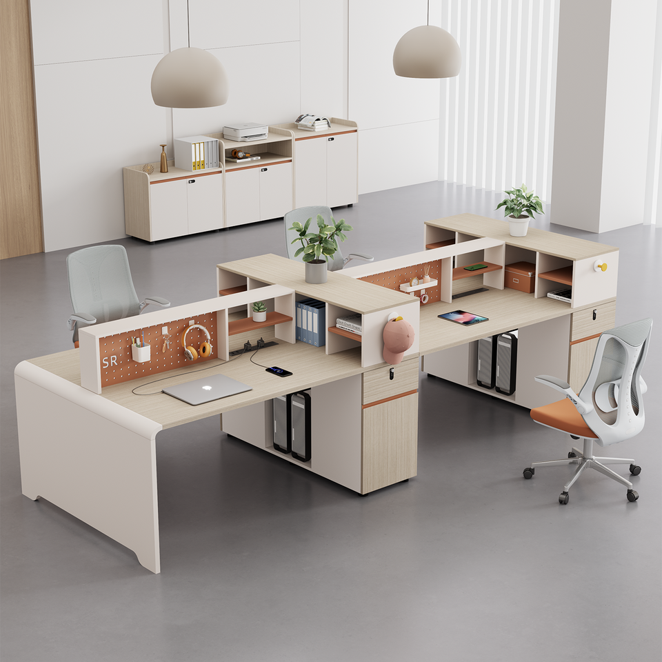 Escritorio Específico para Finanzas con Panel Perforado o Doble Estación de Trabajo enfrentadas en la Oficina