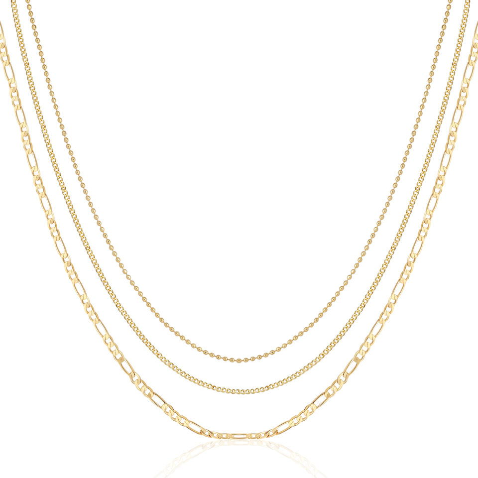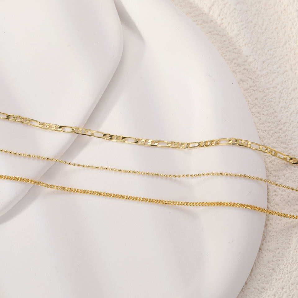 Collar de cadena fina con cuentas, de tres capas, de latón, de 1.5 mm, estilo cubano, para 35+38+42+5 cm