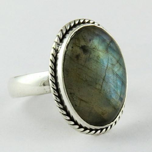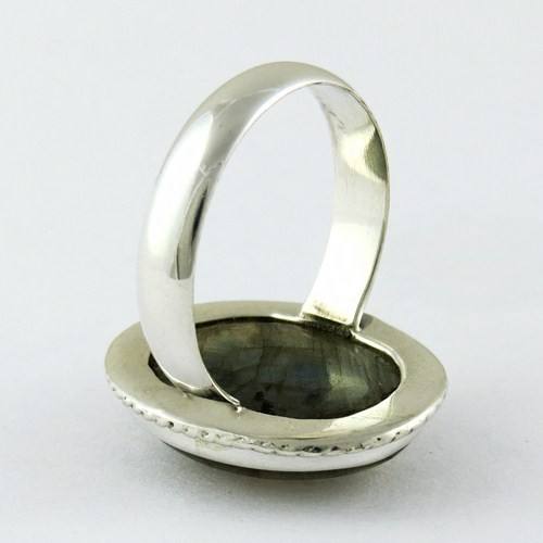 Gema labradorita ovalada de diseño fino, anillos de plata de ley 925, plata oxidada en línea