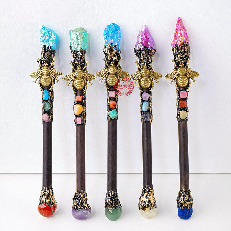 Varita mágica de cristal hecha a mano fina, varita de bruja de cuarzo, varita mágica de Cosplay de Navidad y Halloween para brujas y magos