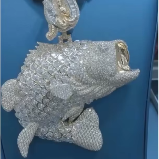 Joyería Hip Hop de Alta Gama, Colgante con Forma de Pez, Plata de Ley 925, Piedra de Moissanita VVS Personalizada, Diamantes Incrustados