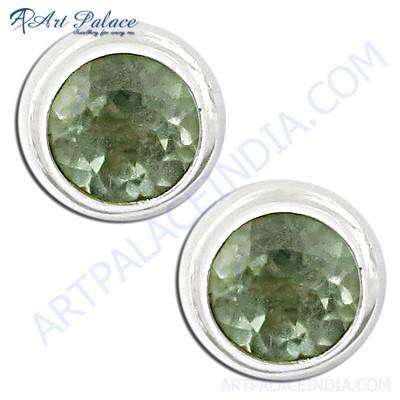 Pendientes de plata de aro fino con piedras preciosas de amatista verde natural Producto Premium