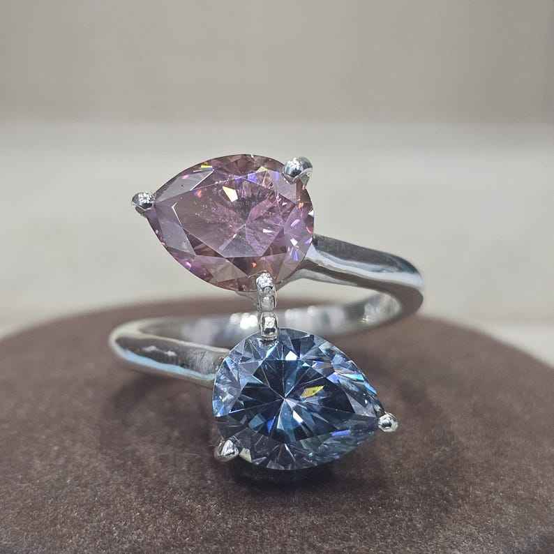 Anillo de Compromiso y Boda para Mujer, con Diamante Moissanita VVS1 Original Certificado por GRA, Corte Pera, Engaste de Plata 925