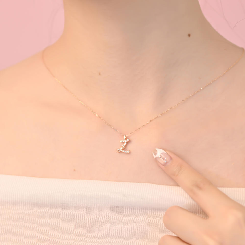 Nombre del producto:Collar con colgante de letra Z con diamantes en oro de 18 quilates