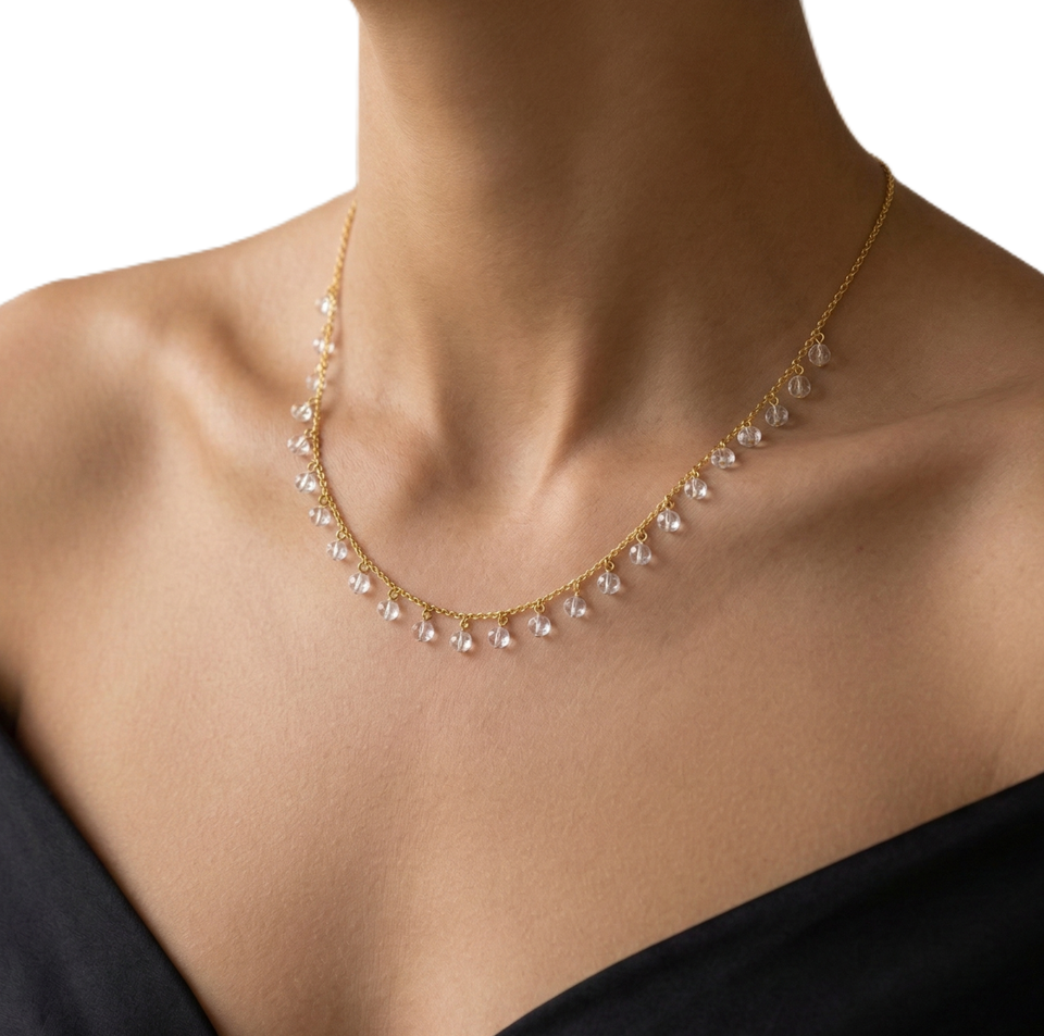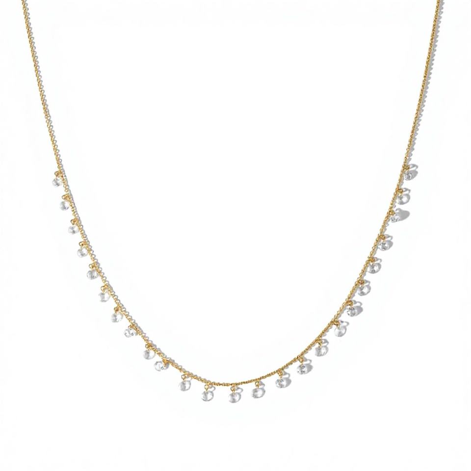 Collar de cadena con diamantes de laboratorio finos engastados en oro macizo de 10K y 14K, delicado y minimalista, con bisel de diamantes.