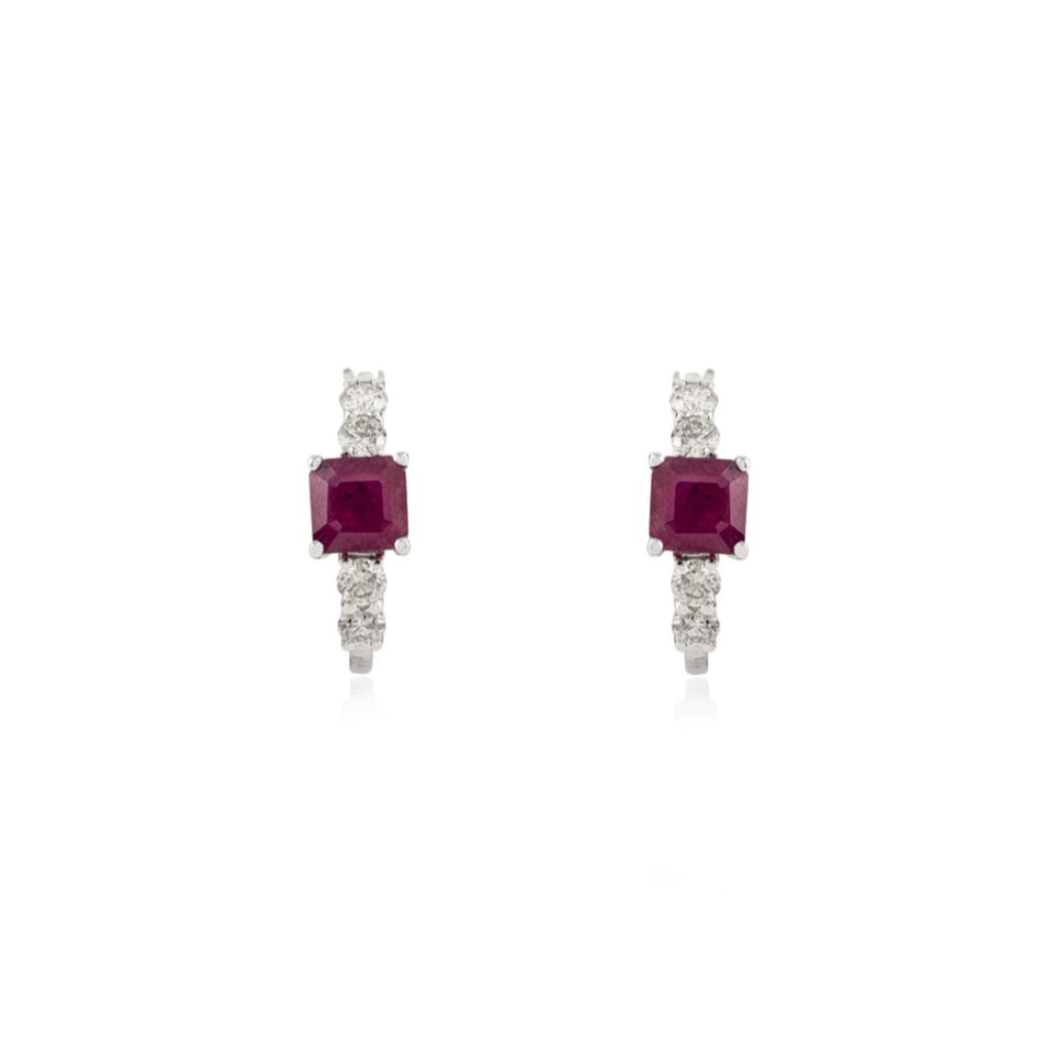 Pendientes de Aro de Oro Blanco de 18K con Rubí y Diamantes con Engaste de Puntas, Estilo Clásico de Alta Calidad, Regalo para Mujer o Niña, Proveedor de Joyería