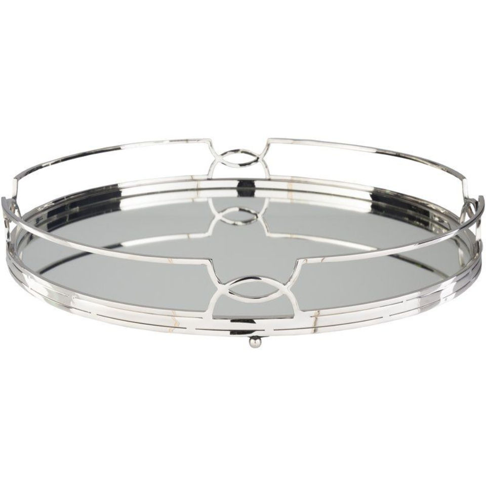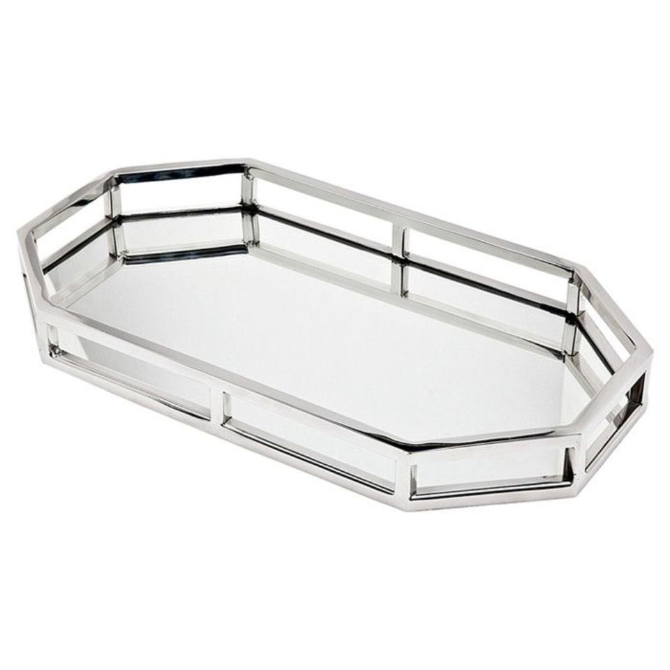 Bandeja de Servir Rectangular Octogonal de Acero Inoxidable de Alta Calidad, Niquelada, con Inserto de Cristal Espejo para Decoración del Hogar