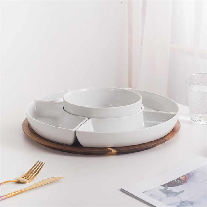 Detalles del embalaje:Fine quality restaurant buffet nordic ceramic serveware food tray tapas serving dishes porcelain with bamboo tray