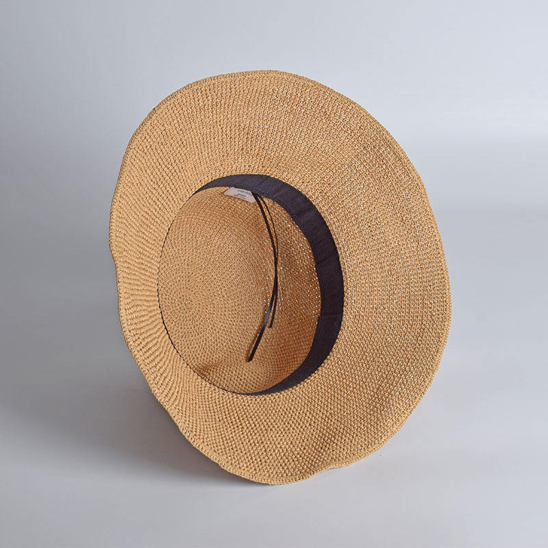 Sombrero de paja de rafia fina, sombrilla de vacaciones versátil, sombrero de cubo de ganchillo tejido a mano