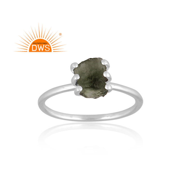 Anillo apilable de piedras preciosas de moldavita en bruto Natural de plata de ley fina, joyería para mujer, regalo para ella