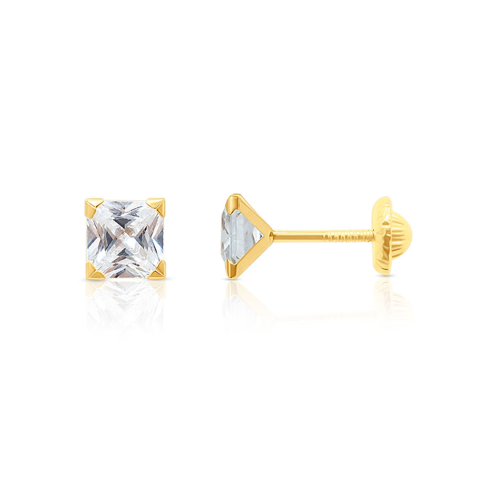 Pendientes finos de oro con piedra CZ cuadrada