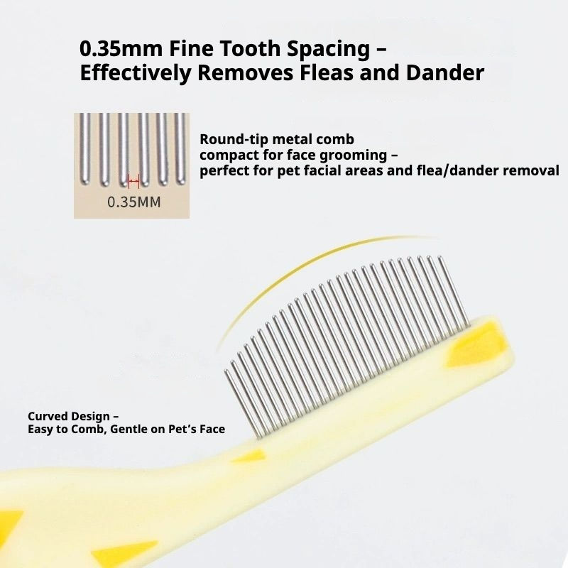 Ultra-fine 0.35mm pin spacing for precise flea and, Rounded tips prevent scratching and ensure gentle, Curved ergonomic handle for comfortable and precis, Compact size ideal for cats, small dogs, and puppi