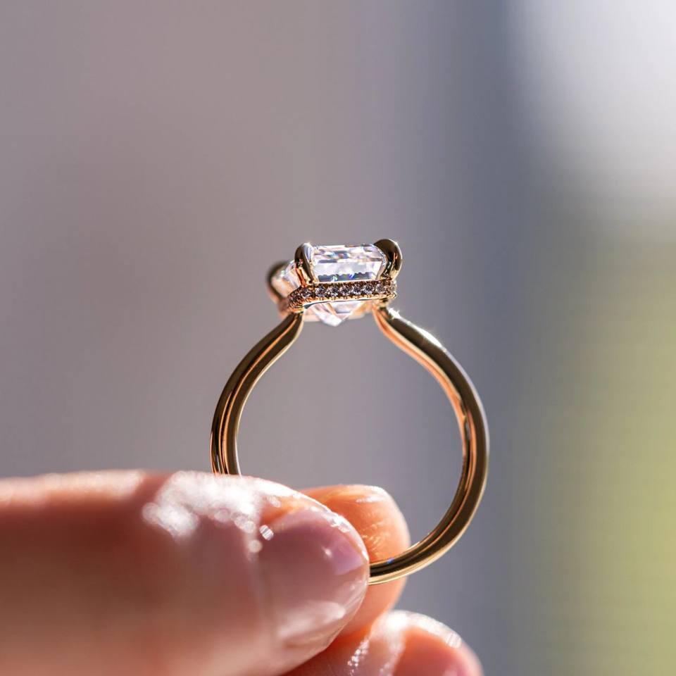 Anillos de solitario de diamante de compromiso de boda fina joyería fina 14K 18K oro sólido anillo de diamante de corte esmeralda para mujer Envío Directo
