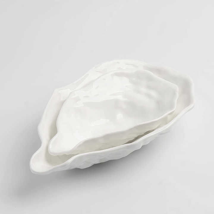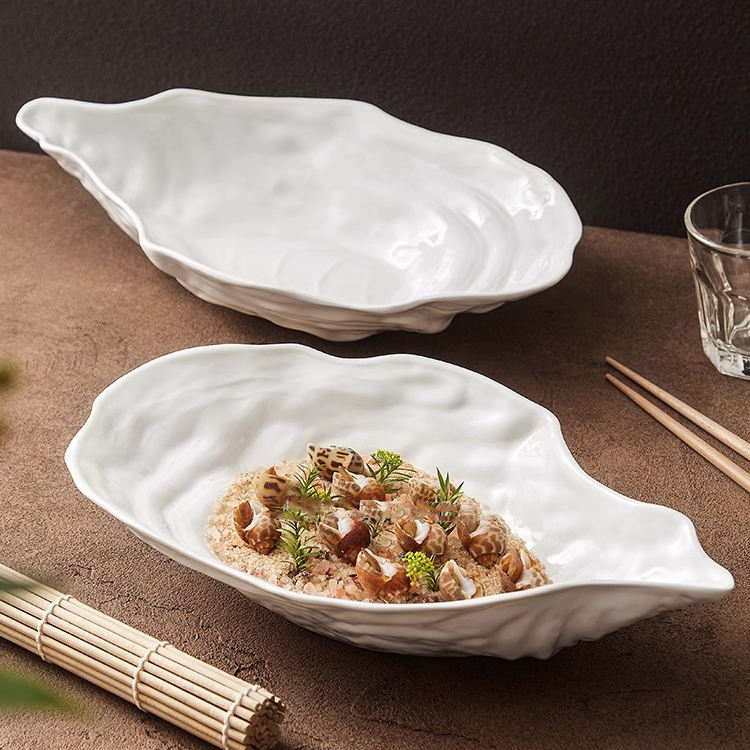 Platos de cerámica con forma de concha de ostra creativa blanca fina, soporte para Tapas, bandeja decorativa, cuenco mate de porcelana para comida de mar
