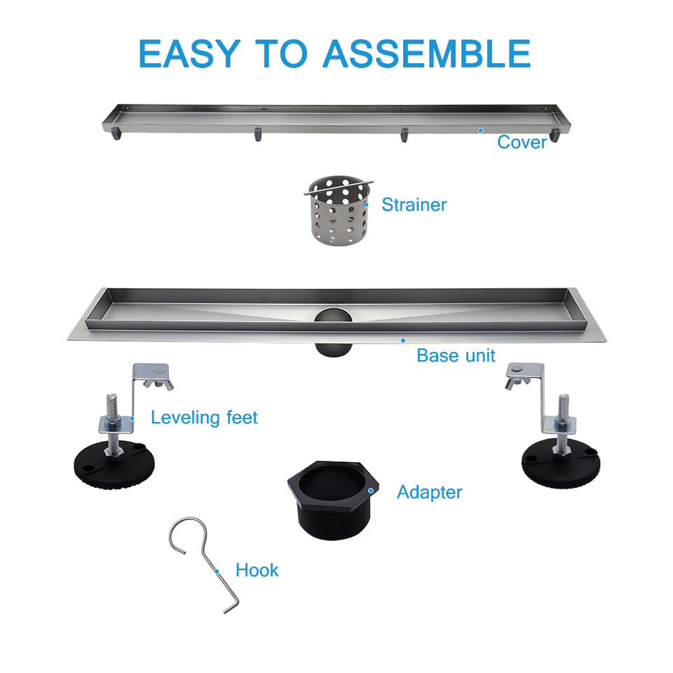 Salida vertical finamente procesada Material de acero inoxidable Pies de nivelación ajustables Drenaje de piso lineal de inodoro