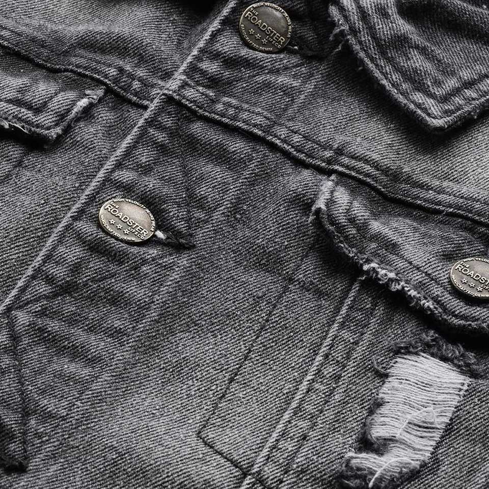 Chaqueta Vaquera Vintage para Hombre con Capucha, 100% Algodón Puro de Alta Calidad, con Cuello Alto y Logotipo Frontal