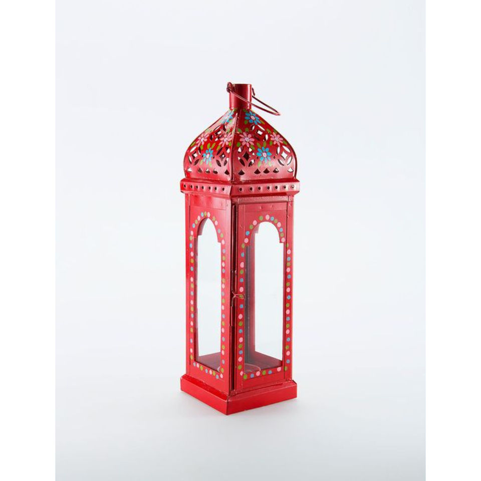Farol de metal con recubrimiento en polvo rojo de la mejor calidad, farol decorativo colgante para interiores, exteriores, hogar, jardín, bodas y eventos.