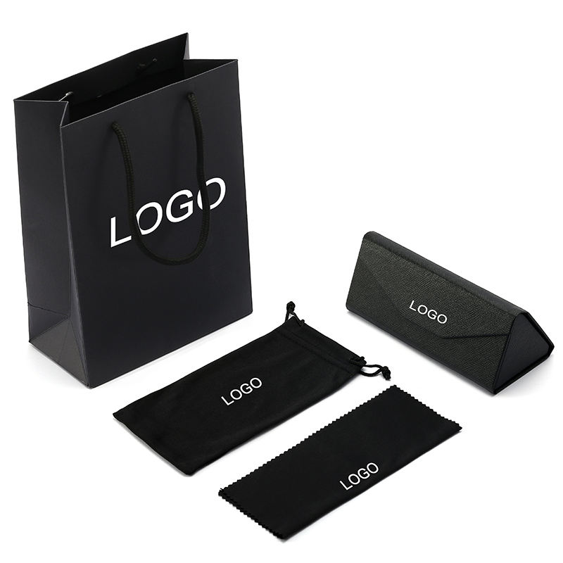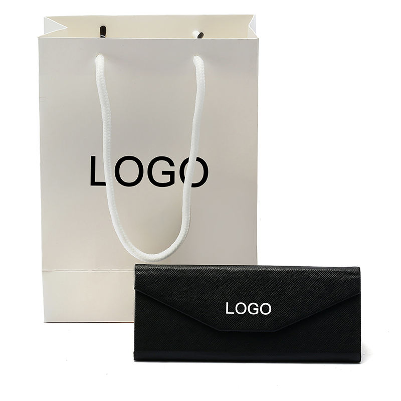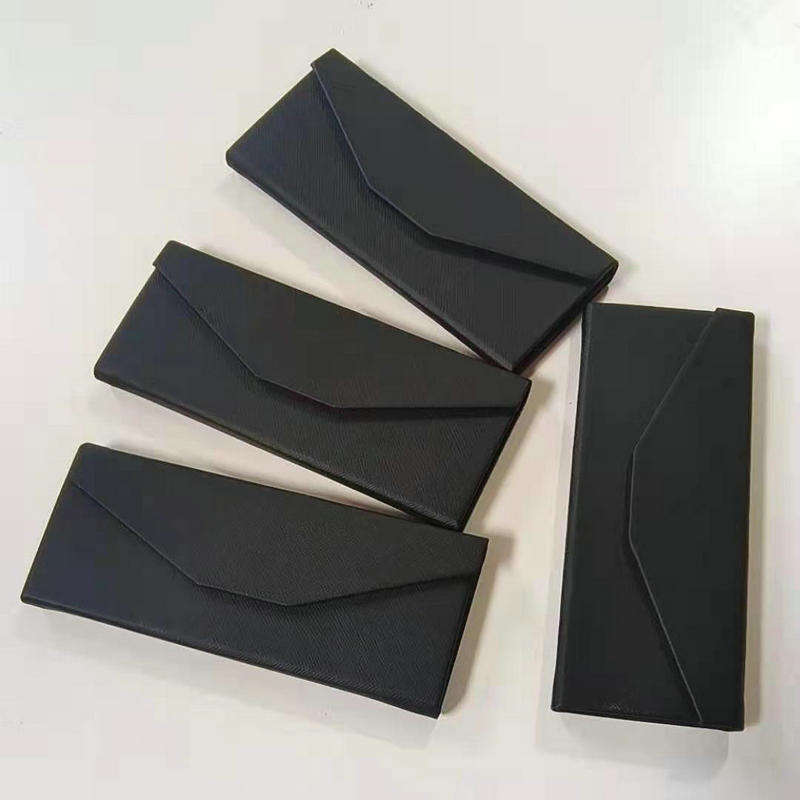 Estuche de Gafas de Sol y Anteojos Plegable Rectangular Negro de Lujo con Logotipo Personalizado Finewell, Estilo Clásico, en Cuero PU Semirrígido