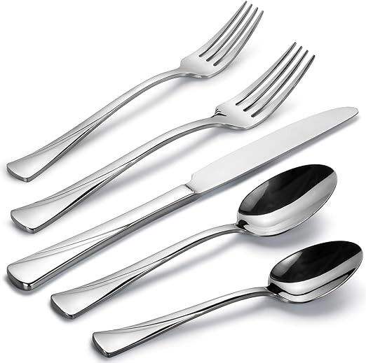 Cubiertos de Acero Inoxidable con Acabado Plateado de Calidad Superior, Juego de Cubiertos con Logotipo Personalizado para Restaurantes