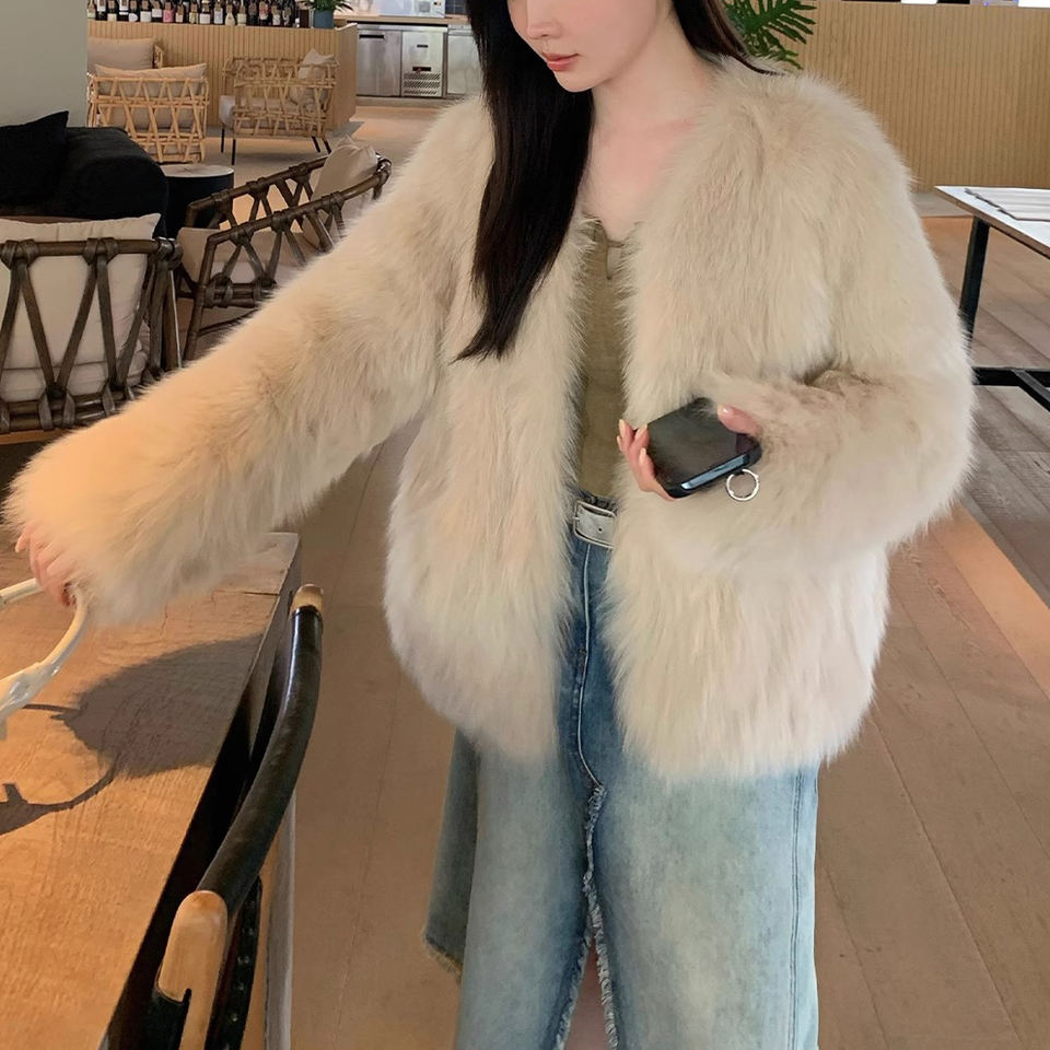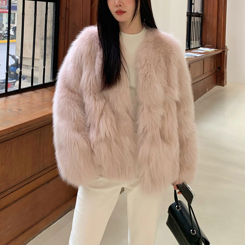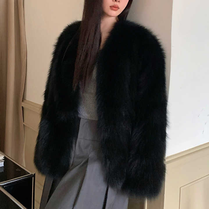 Finlandia Importado Saga Fox Fur Ragged Hair Coat Moda Cardigan Abrigo de piel Invierno