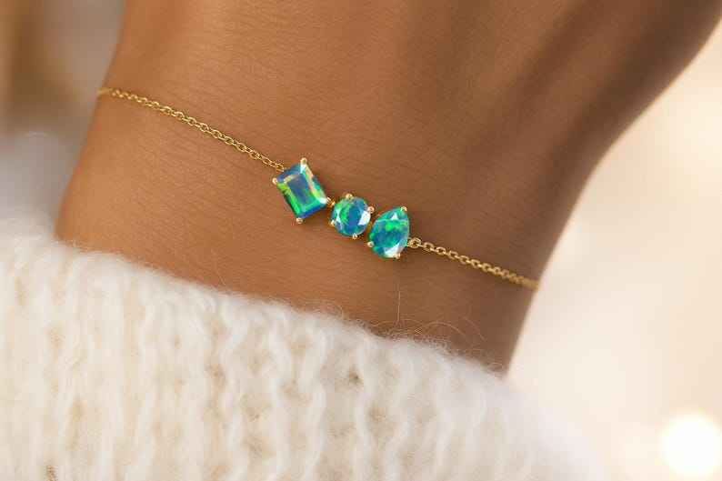 Palabra clave:Negro Opal multi fuego tenis que brilla intensamente expansiva pulsera hecha a mano