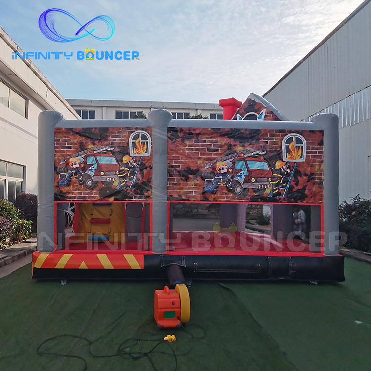 Camión de bomberos tema Casa de rebote inflable castillo hinchable con tobogán comercial gorila inflable Combo tobogán Castillo de salto