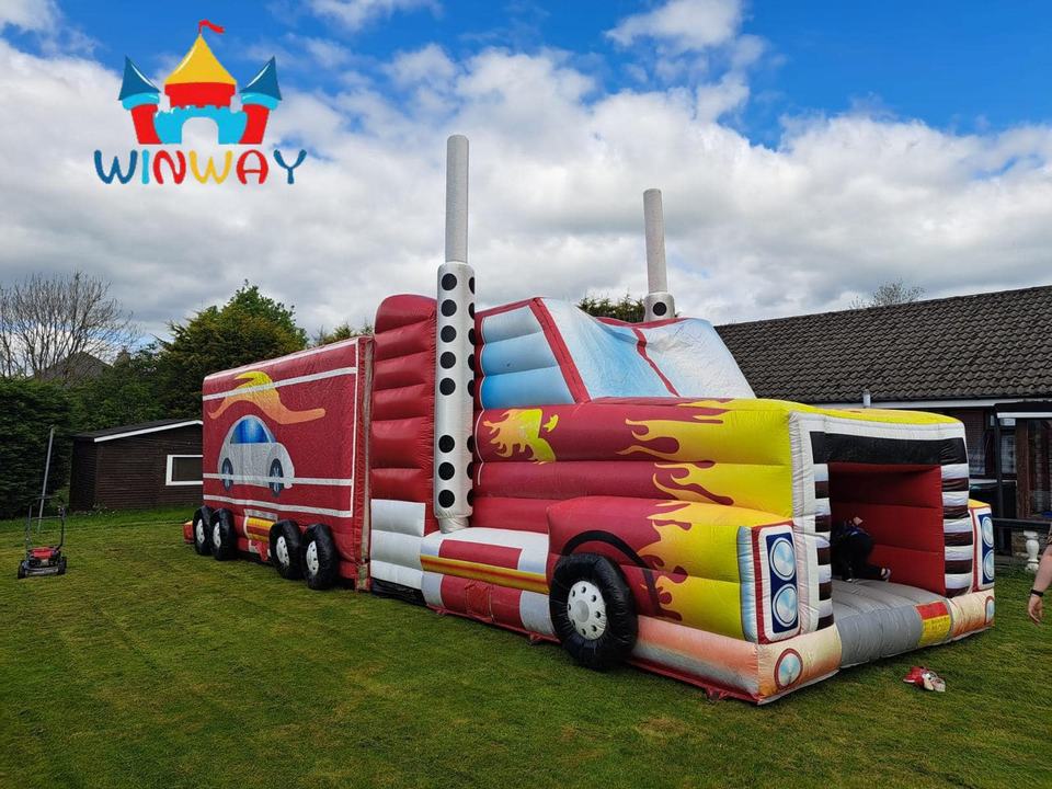 Tobogán inflable con temática de camión de bomberos para fiestas de cumpleaños y eventos de Carnaval para niños