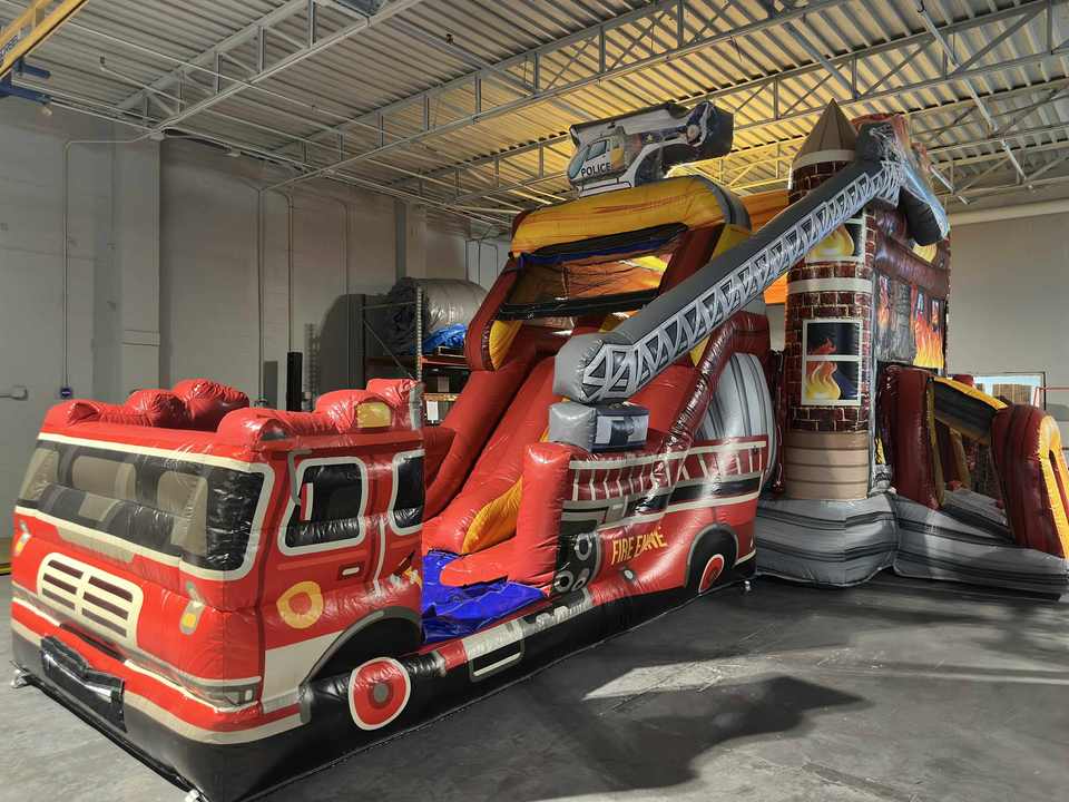 Equipo de lucha contra incendios Castillo inflable Cama de salto Tobogán Juguetes inflables para niños Equipo de juego al aire libre Fuerte inflable